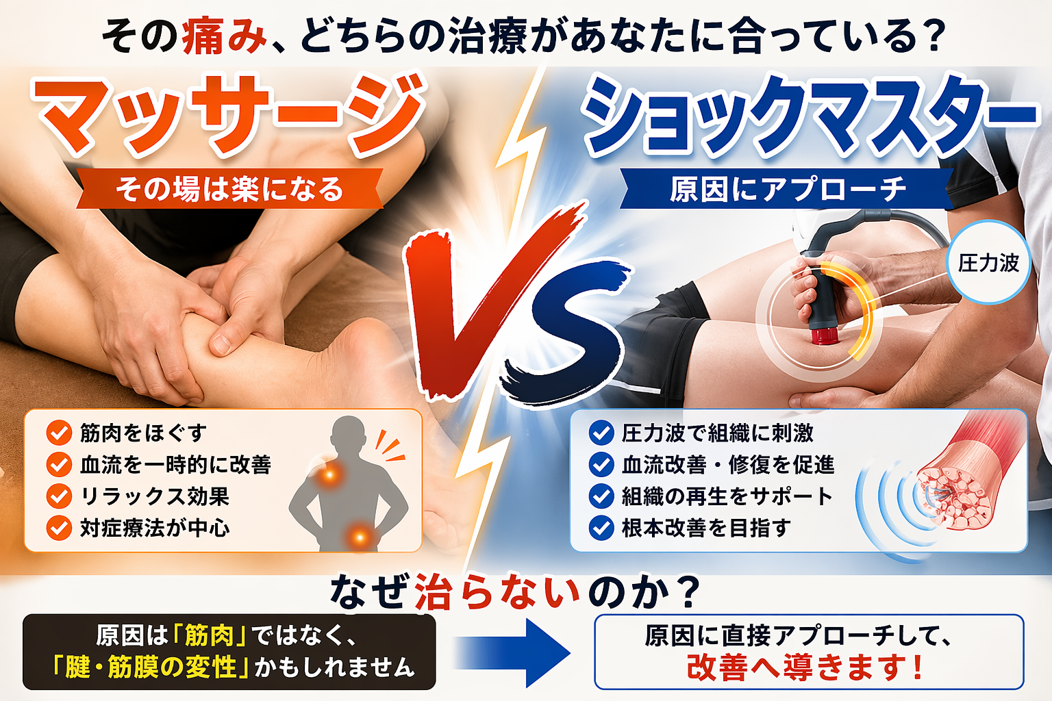 「今の痛みをやわらげること」と「これから先も動ける体をつくること」。
